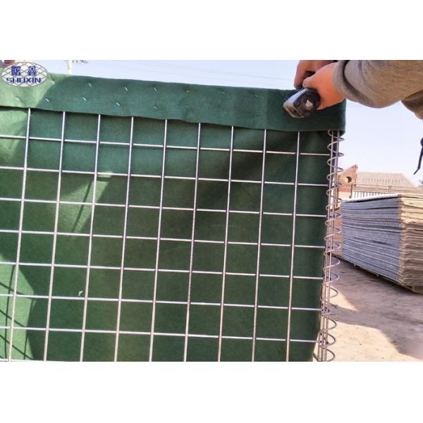Flexible Sand Filled Barriers Galvanized Gabion With Green Geotextile Images |